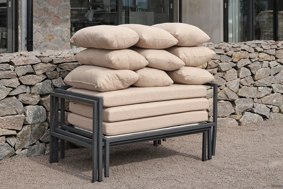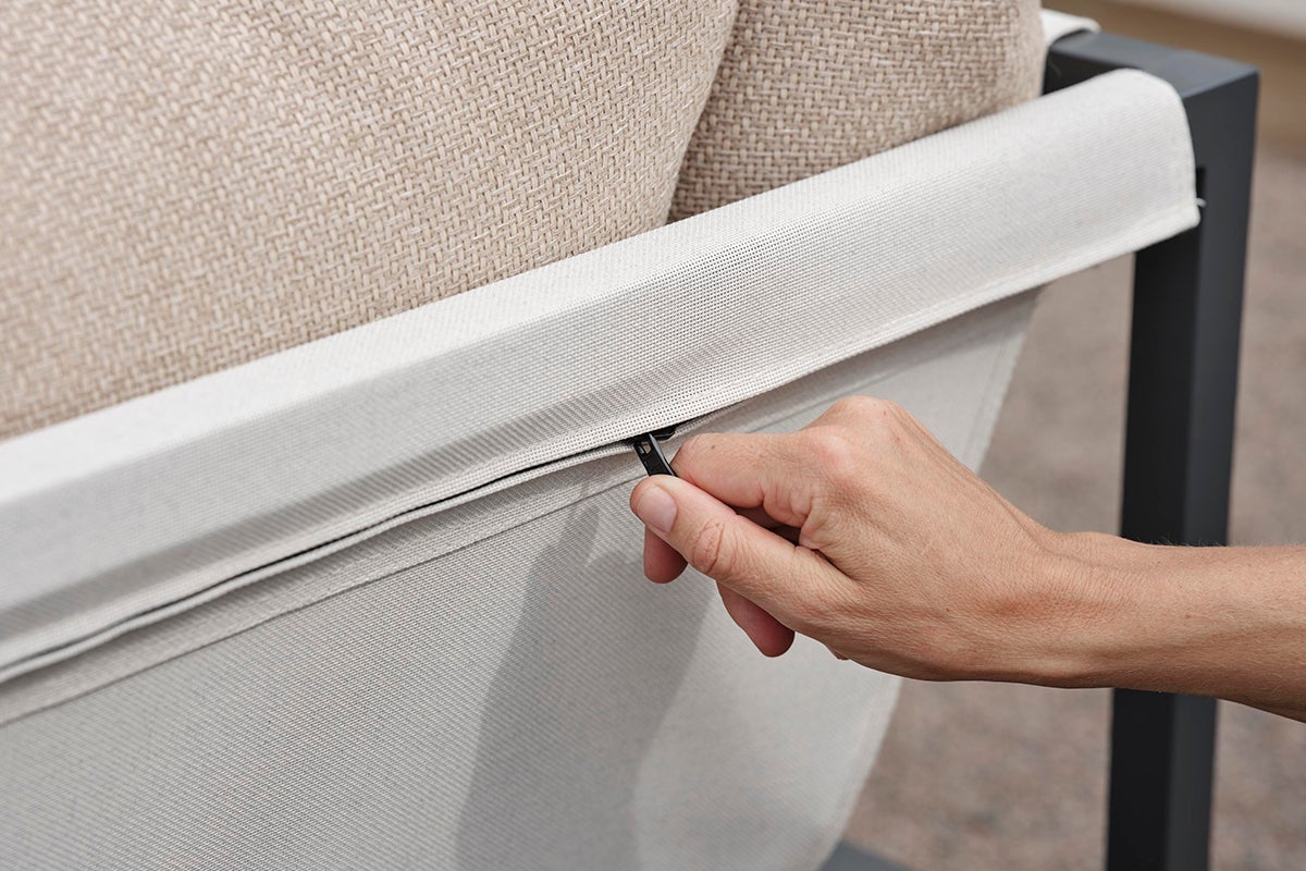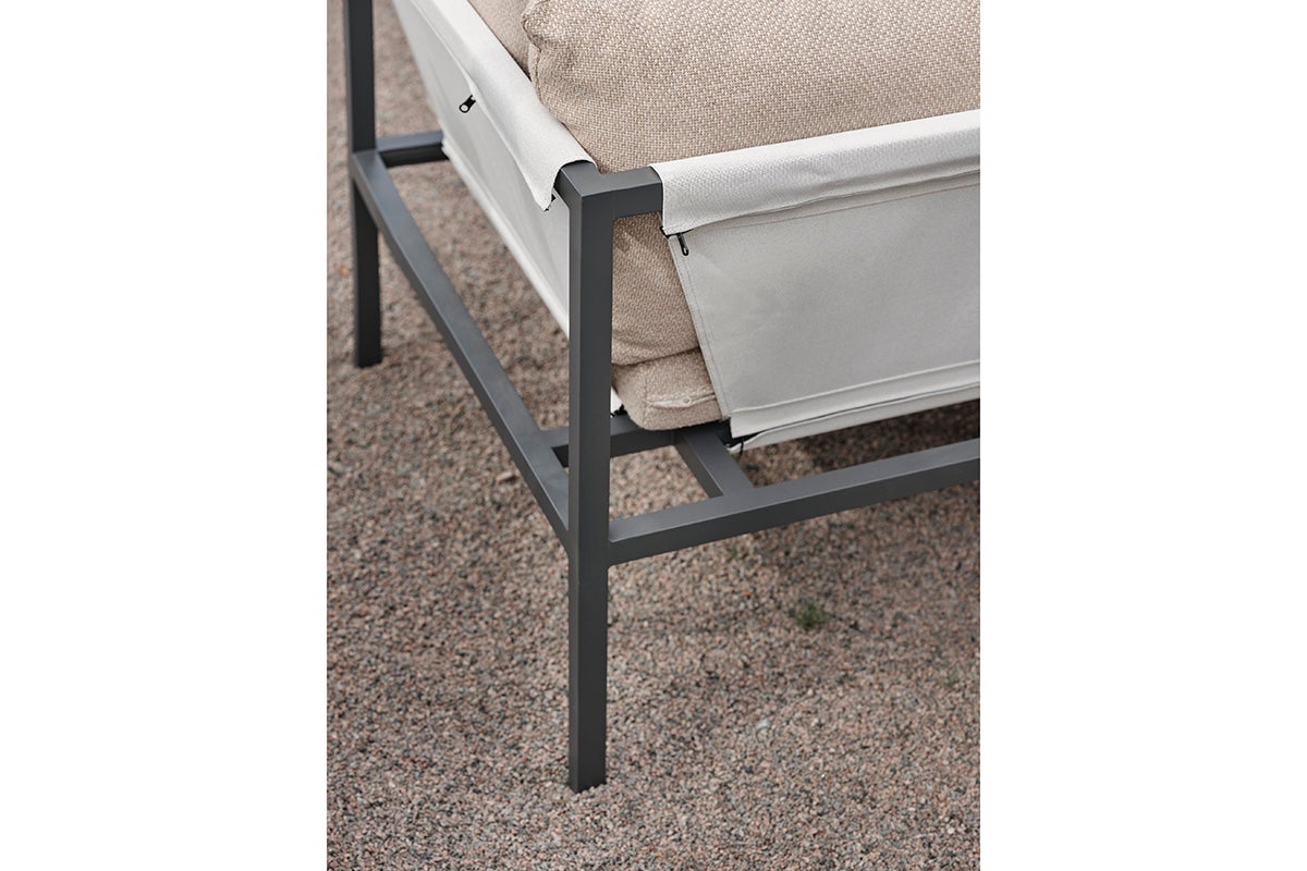 Allie – tout dans une boîte. Découvrez le mélange parfait de simplicité et de sophistication de design, où chaque élément – du cadre en aluminium à l'assise en textilène vif. Des coussins confortables dans un tissu moderne de couleur orge – tout est soigneusement emballé dans une seule boîte. Assembler votre oasis extérieure n’a jamais été aussi facile, vous permettant de vous concentrer sur la jouissance de votre espace plutôt que sur l'installation. Sa conception intelligente le rend également facile à ranger pendant l'hiver.
