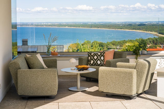 Bolster combine un confort invitant avec un design expressif. Les formes entièrement rembourrées, les coussins généreux et les pieds robustes confèrent à la série son caractère unique, tandis que le cadre robuste en aluminium anthracite assure une longue durée de vie. Le tissu TPU hydrofuge rend le canapé résistant aux intempéries. Les coussins sont disponibles dans notre tissu Teddy, dans des couleurs qui renforcent la sensation d’un salon extérieur exclusif. Les coussins sont faciles à retirer et à ranger. Bolster brouille la frontière entre l’intérieur et l’extérieur - la sensation d’un canapé d’intérieur créé pour la vie à l’extérieur.