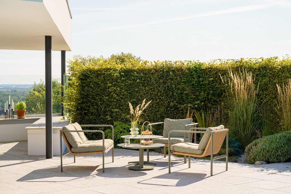 Des formes douces et un aspect rotin d’inspiration naturelle confèrent à Motty à la fois confort et style. La série est disponible dans les couleurs Zin Red, Nordic Green et Black. Le cadre thermolaqué présente des transitions douces au niveau des articulations et des accoudoirs, ce qui renforce l’aspect élégant. Des coussins en tissu Teddy doux complètent la sensation et rendent le Motty aussi accueillant que confortable.
