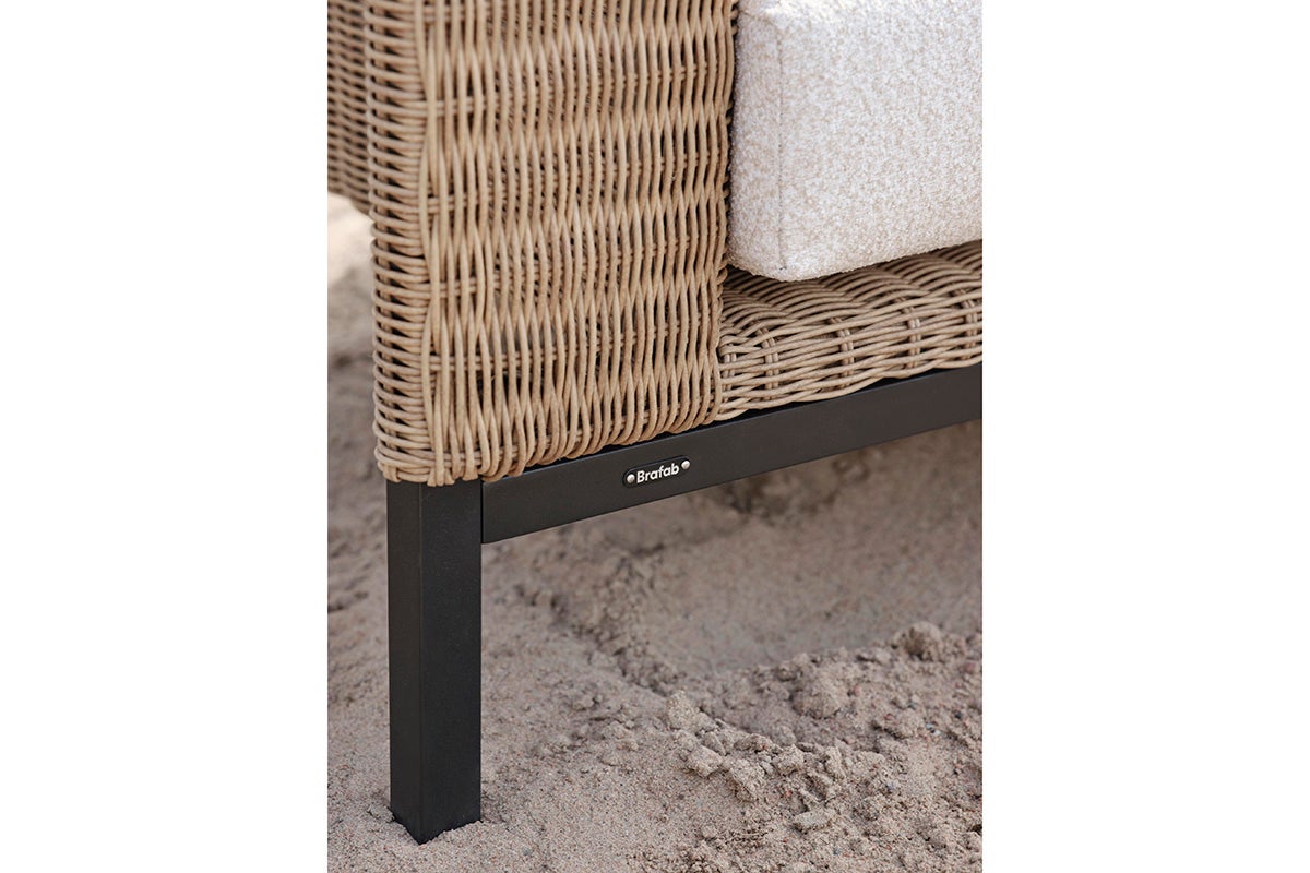 Ce qui distingue Shell, c'est sa fusion unique d'influences de design. Les lignes épurées et la palette de couleurs neutres incarnent la simplicité calme du design scandinave, tandis que la chaleur et la texture du rotin capturent l'ambiance détendue et ensoleillée de la Méditerranée. Ce mélange fait de Shell le choix idéal pour ceux qui cherchent à créer un oasis extérieur à la fois tendance et intemporel. Le dossier ouvert révèle la structure, en faisant un élément de design distinctif. Des coussins moelleux et profonds en tissu blanc doux et sophistiqué complètent le look.
