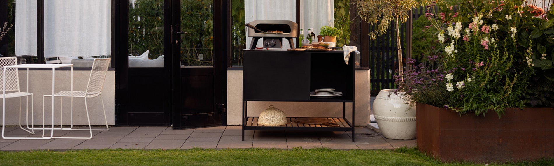 Créé pour la pizza. Prêt pour plus. Prep est la cuisine extérieure idéale pour les fours à pizza et la cuisine en plein air. Le plan de travail généreux est en aluminium brossé, résistant aux rayures et facile à nettoyer. Des détails intelligents comme un espace pour la bouteille de gaz et une étagère pratique en dessous rendent Prep à la fois fonctionnel et élégant.